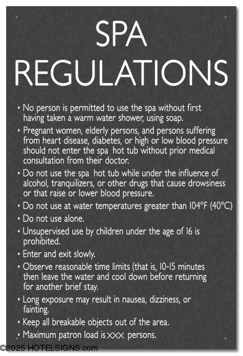 Use to inform and warn guests of spa rules and policies in Nebraska.