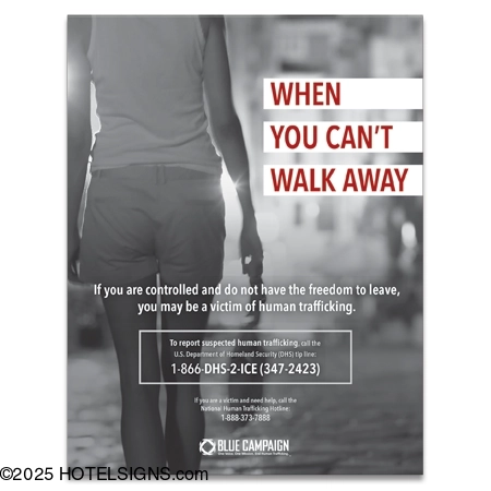 This sign is required to be posted at front entrances or lobby areas in hotels.