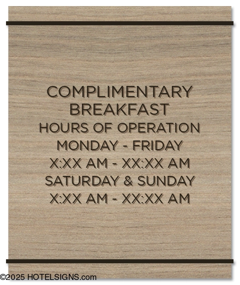 Customize up to 13 lines of text. Suggested phrases: "Complimentary Breakfast Hours," "Gift Shop Hours," etc.