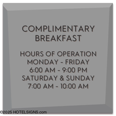 - Customize up to 7 lines of text. Suggested phrases: “Complimentary Breakfast Hours," "Gift Shop Hours," etc.
