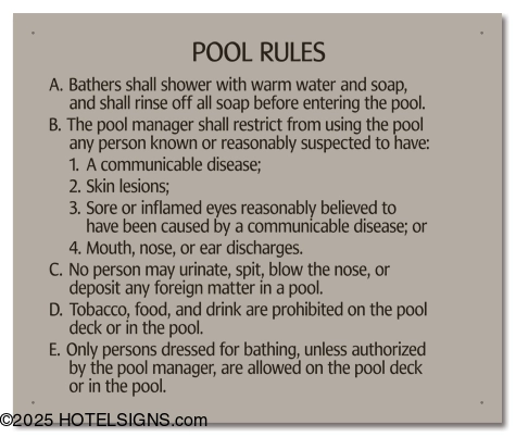 - Use to inform and warn guests of pool rules and policies in Alaska.