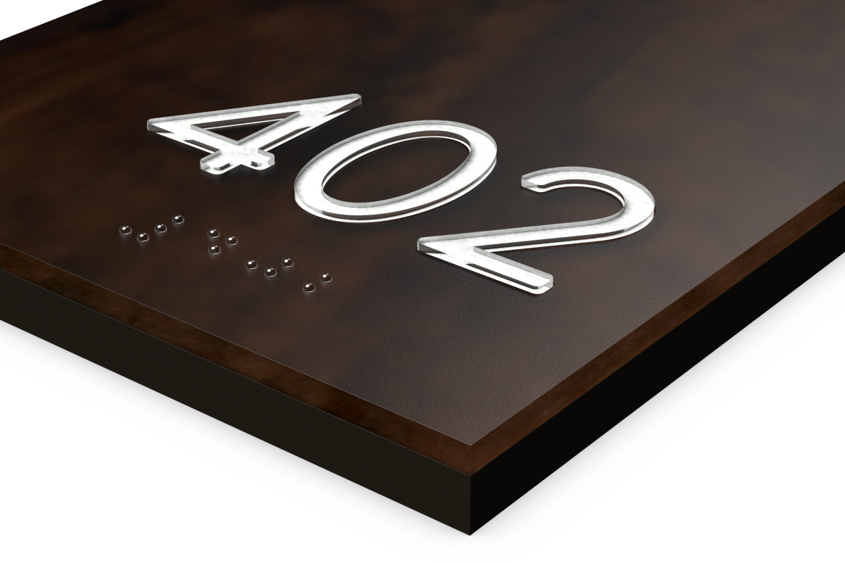 • Raised text and domed Grade 2 Braille to ensure ADA compliance.