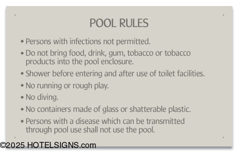 - Use to inform and warn guests of pool rules and policies in South Dakota.