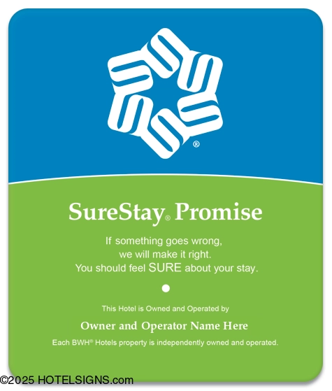 - A Service Promise plaque is required for all SureStay® Branded hotels, globally.