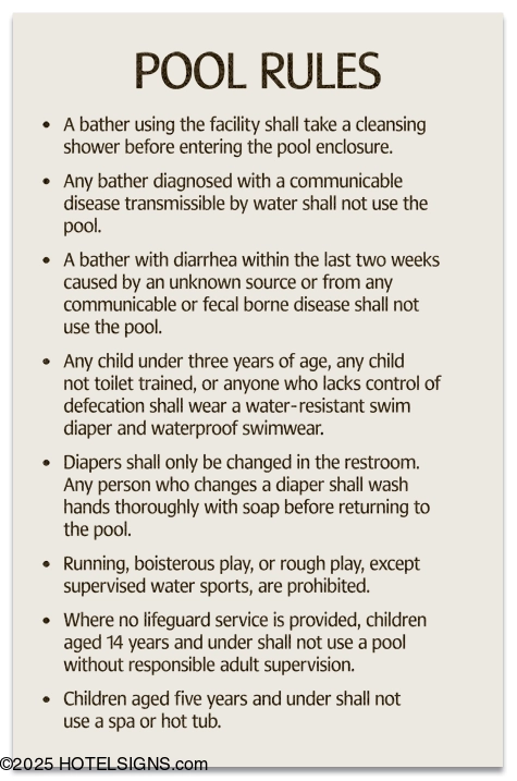 - Use to inform and warn guests of pool rules and policies in Utah.