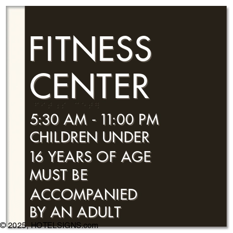 Customize up to 8 lines of text. Suggested phrases: "Waiting Room," "Fitness Center," "Mechanical Room."
