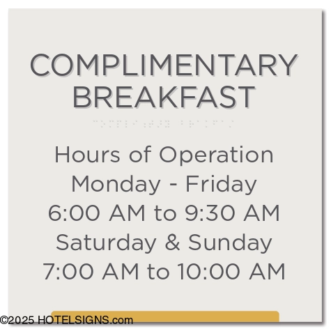 - Customize up to 7 lines of text. Suggested phrases: "Breakfast Room Hours," "Fitness Center Hours," "Business Center Hours."