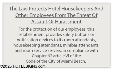 Housekeeper Protection Notice - Miami Beach, FL Code (Self-Adhesive)