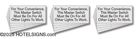 - Use to inform guests and staff members that the master switch must be on for other lights to work.