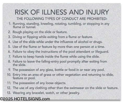 - Use to inform and warn guests of water slide rules and policies.
