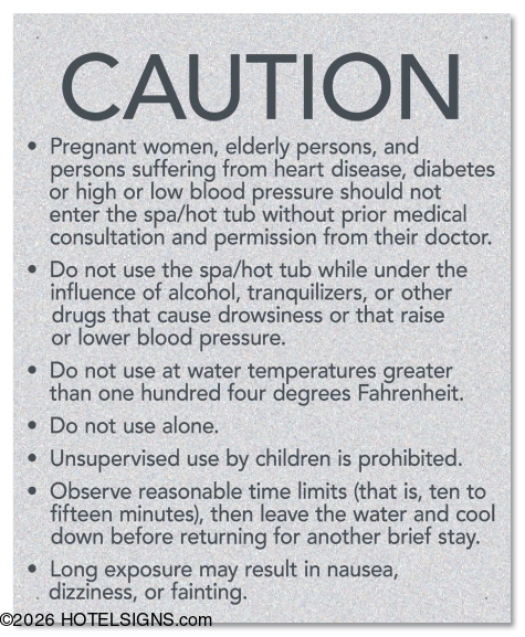 This sign was designed in accordance with Ohio Administrative Code, Section 3701-31, Rule 4(E)(3)(e) for Spas.