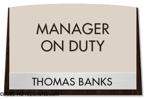 Identifies the manager on duty, and can easily be updated at shift changes.