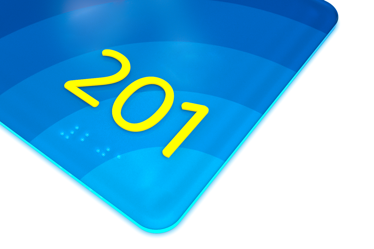 Raised text and Grade 2 Braille to ensure ADA compliance.