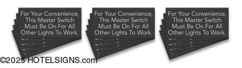 - Use to inform guests and staff members that the master switch must be on for other lights to work.