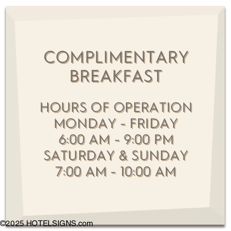 - Customize up to 7 lines of text. Suggested phrases: %u201CComplimentary Breakfast Hours," "Gift Shop Hours," etc.