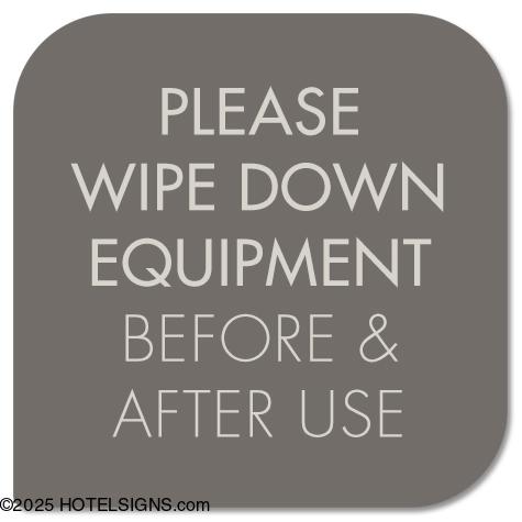 - To be placed in fitness area informing everyone to wipe down equipment before and after use.
