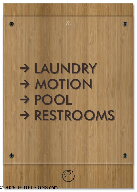 - Required in front of elevators, at the exit out of the guest room wing where applicable, and at the entrance to the hallway where restrooms are located.