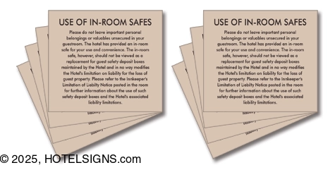 - Use to warn guests not leave important personal belongings or valuables unsecured in room.
