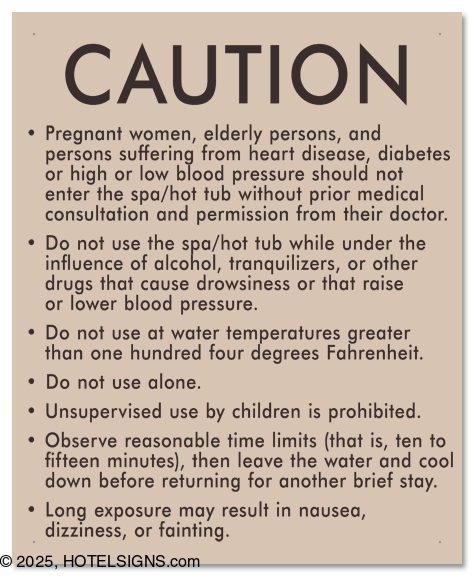 This sign was designed in accordance with Ohio Administrative Code, Section 3701-31, Rule 4(E)(3)(e) for Spas.