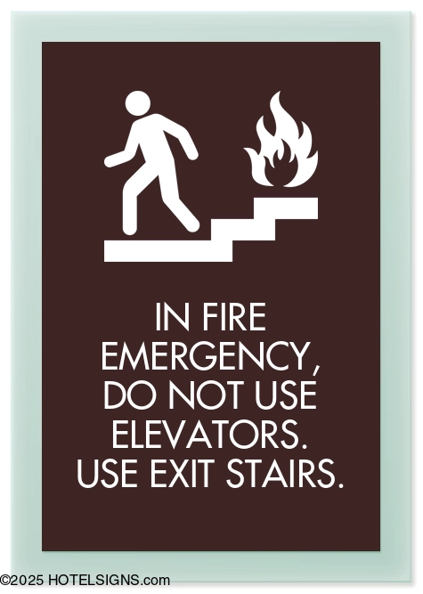 Post at an elevator to instruct people to use the stairs in the event of an emergency, not the elevator.