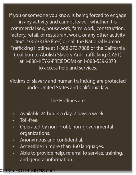 This sign, GSS-HT118A-CA, is compliant with current regulations with CA Civil Code 52.6. For further information, click the following link, California Code 52.6.