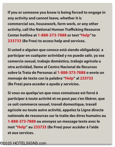 Human Trafficking Notice - Louisiana Code (English/Spanish/French)