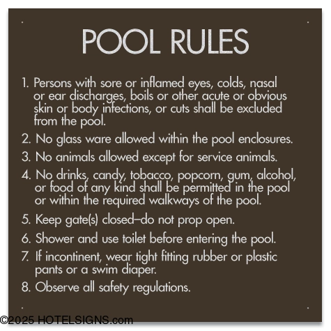 - Customizable: Choose from over 80 standard colors for the sign, font, and graphics to match your pool area's aesthetic.