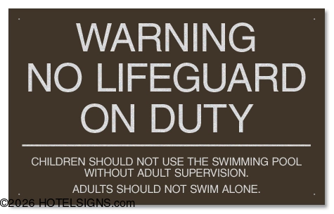 - Use to inform and warn guests that there is no lifeguard on duty.