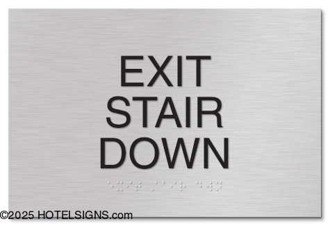 Use to inform guests and staff of access to grade-level exterior exits by means of stairways.
