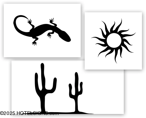 - Features graphics in Southwestern, Community, Coastal, or Resort designs.