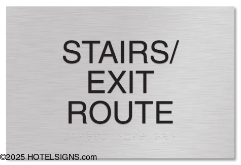 - Use to inform guests and staff of stairs and access to grade-level exterior exits.