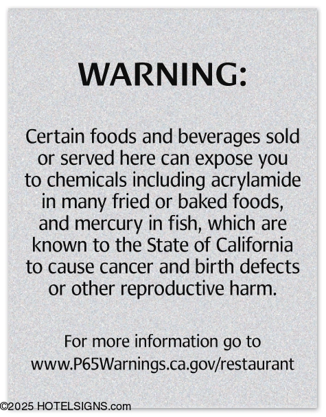 NOTE: Sign is to be placed as customers enter each public entrance to the restaurant or facility where food or beverages may be consumed.