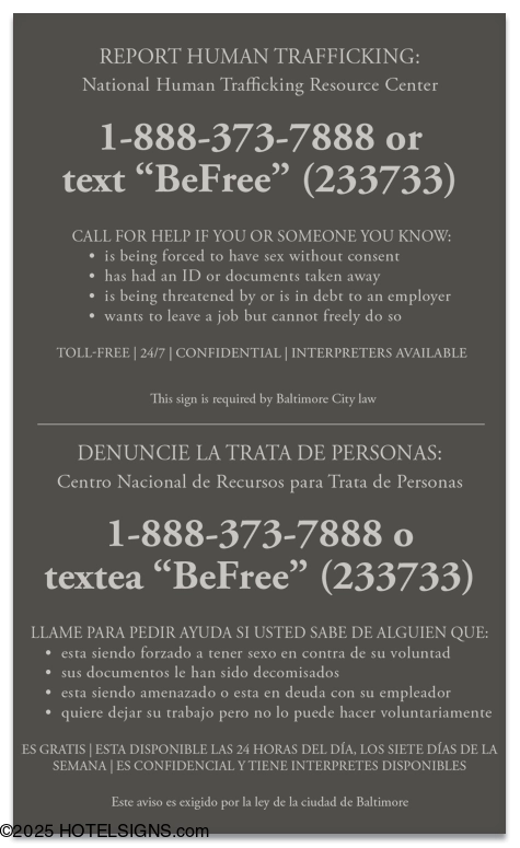 Human Trafficking Notice - Baltimore, MD Code (Acrylic)