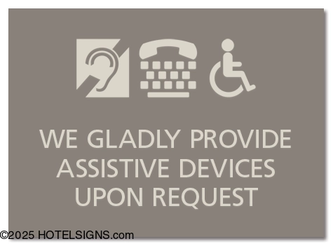 - Features standard ADA symbols for hearing loss, TTY, and accessibility.