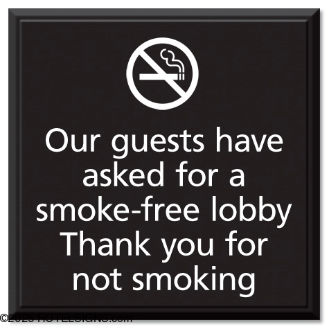 Use to inform guests that the lobby is smoke-free.