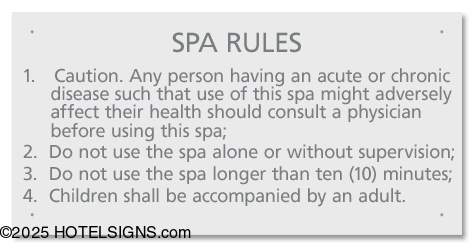 Use to inform and warn guests of spa rules and policies in Missouri.