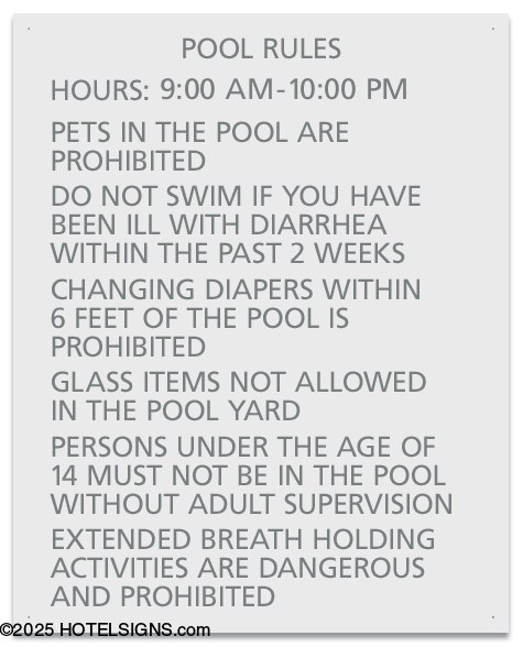 - Use to inform and warn guests of pool rules and policies in Texas.