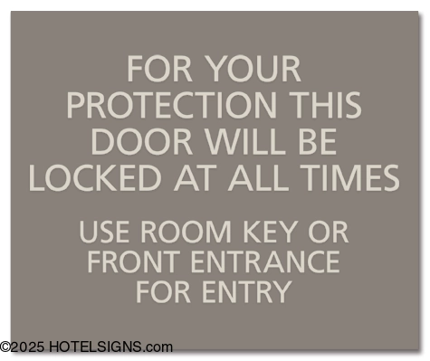 - Post in areas where door will remain locked at all times. Guests must use room key or front entrance to gain access to building.