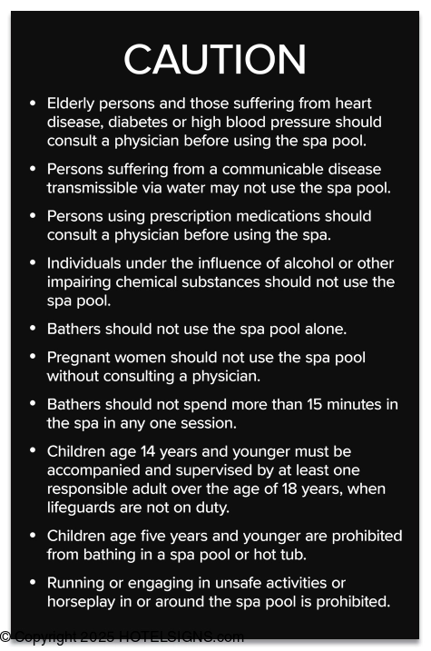 - Use to inform and warn guests of spa rules and policies in Utah.