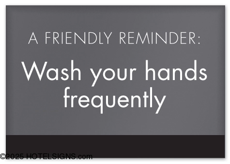 - Place on counter tops to encourage employees and guests to wash their hands.