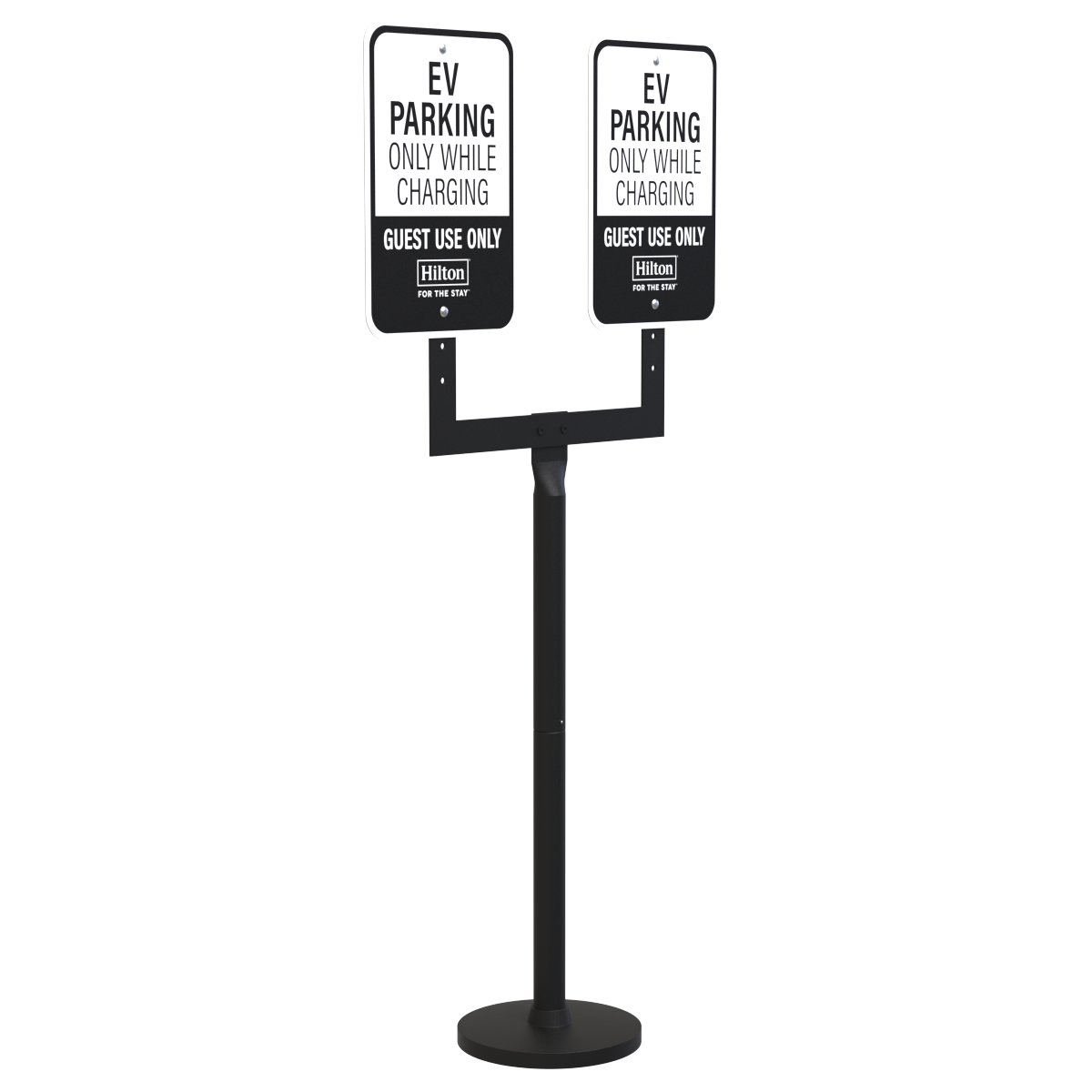 - Includes two (2) Hilton EV Parking Only Signs, post, base, U-bracket, and nut/bolt set; drill holes aid in easy installation.