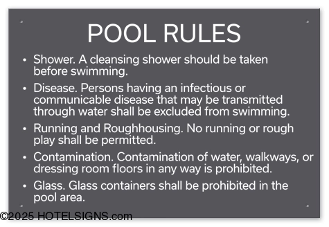 - Use to inform and warn guests of pool rules and policies in Idaho.