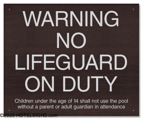 1 Where no lifeguard service is provided, ?WARNING: NO LIFEGUARD ON DUTY? should be posted in clearly legible letters at least 4 inches high.