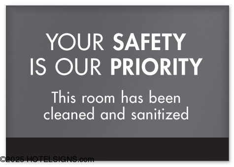 - Place on counter tops to inform guests that the room has been cleaned and sanitized.