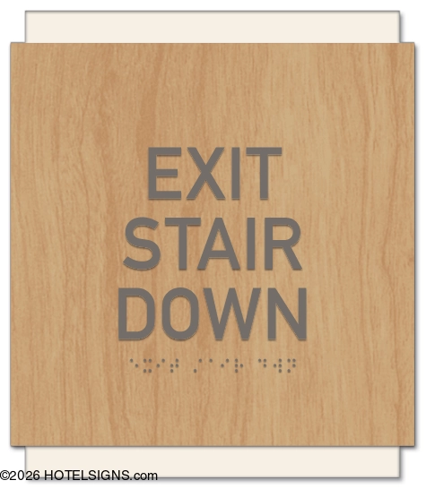 Use to inform guests and staff of access to grade-level exterior exits by means of stairways.