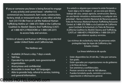 Human Trafficking Notice - California Code (English/Spanish)