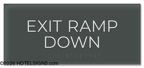 - Use to inform guests and staff of access to grade-level exterior exits by means of ramps.