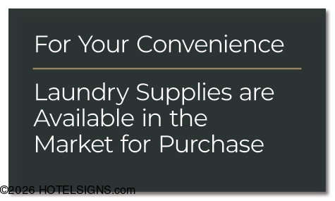 Use to inform guests laundry supplies are available in the Market for purchase.