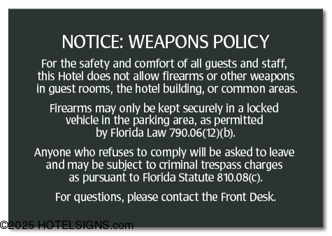 Use to inform guests of the weapons policy of the property.