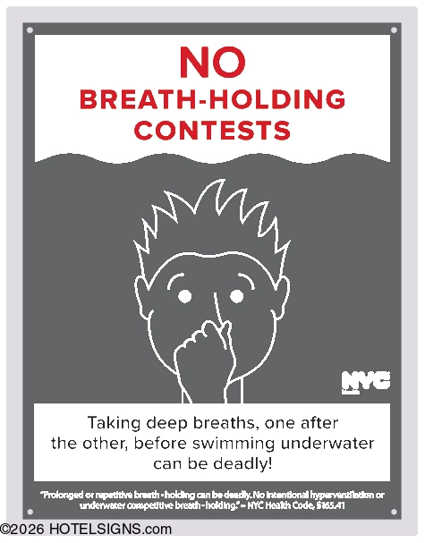 Use to inform and warn guests about breath-holding contests in New York City.